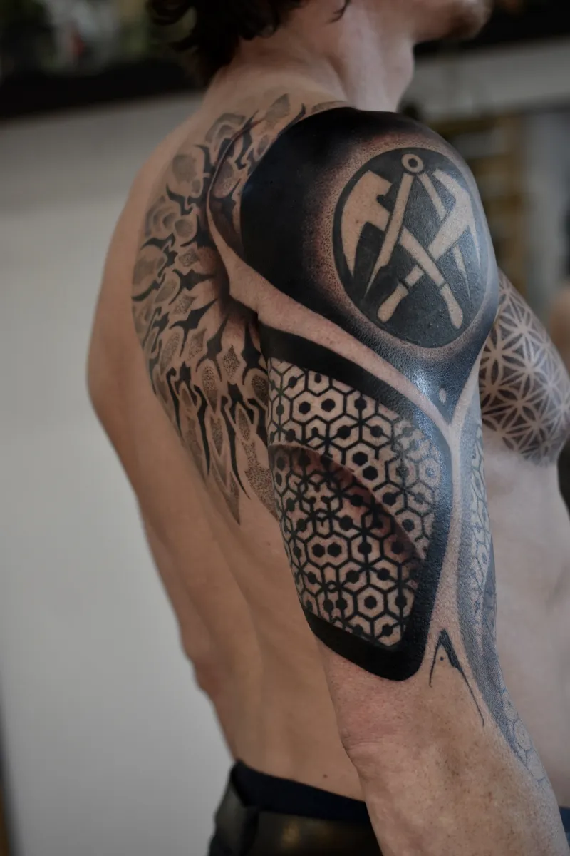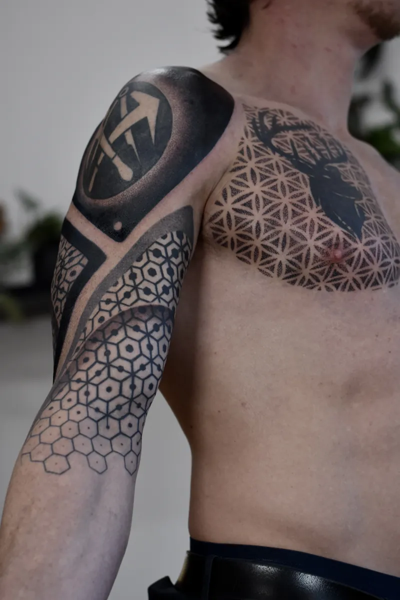 Hey, ich bin Marco Pircher, Tätowierer mit Spezialisierung auf Ornamental Tattoos, Dotwork und Neotribal Tattoos. Seit 2023 arbeite ich in Hamburg im privaten Atelier „The Steady Heart“ in Ottensen. Mit einem besonderen Fokus auf symmetrische Designs und fließende Linien kombiniere ich traditionelle und moderne Stile, um einzigartige, personalisierte Tattoos zu schaffen.